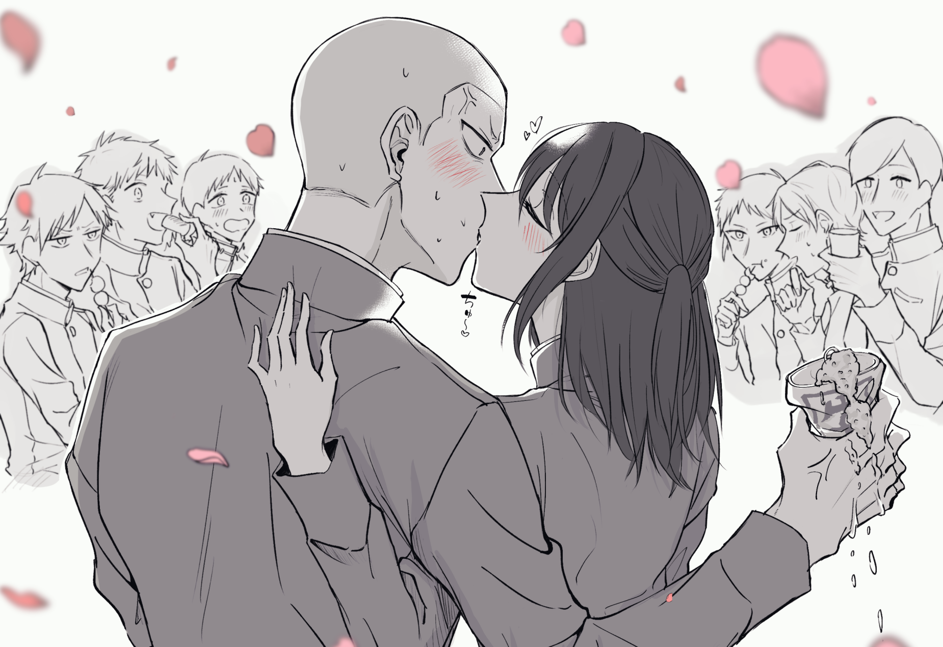 お花見でお酒を飲み過ぎた女子を「おいもうその辺にしておけ」と解放しようとした拍子にみんなの前でチューされてしまった時の谷裂くんの夢絵ください!